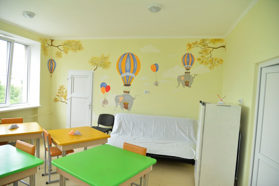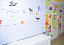 Робота з опорядження дитячого інтер'єру тривала кілька місяців. Дизайнери розробили ескізи малюнків та декорів для стін, а художник Семен Ковальчук майстерно реалізував задум. «Кольоровий світ дитинства» охопив стіни палат, холу та їдальні. Усі ілюстрації виконані високоякісними фарбами для розпису стін компанії «Снєжка-Україна», які безпечні для здоров'я.