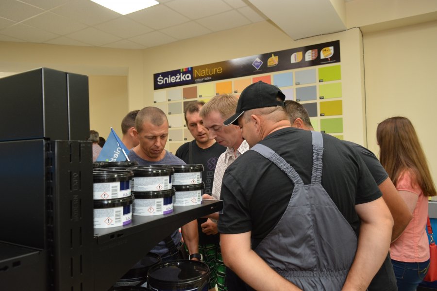 У салоні представлений увесь асортимент продукції Групи компаній «Śnieżka»: фарби для інтер'єрів та екстер'єрів, вироби для захисту й оздоблення деревини й металу ТМ Śnieżka, шпаклювальні маси та ґрунтовки ACRYL-PUTZ, вироби для захисту і декорування деревини ТМ VIDARON, продукція для системи утеплення FOVEO TECH. Водночас відвідувачі зможуть придбати супутні товари, які необхідні для ремонту, будівництва і декору.