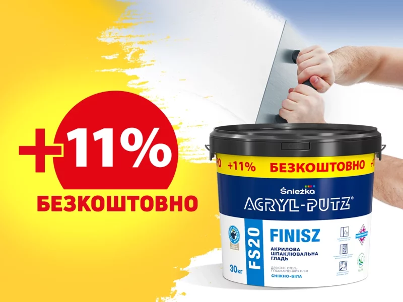 Вирівнюйте стіни і стелі ACRYL-PUTZ® FS20 FINISZ і отримайте 11% шпаклівки безкоштовно!