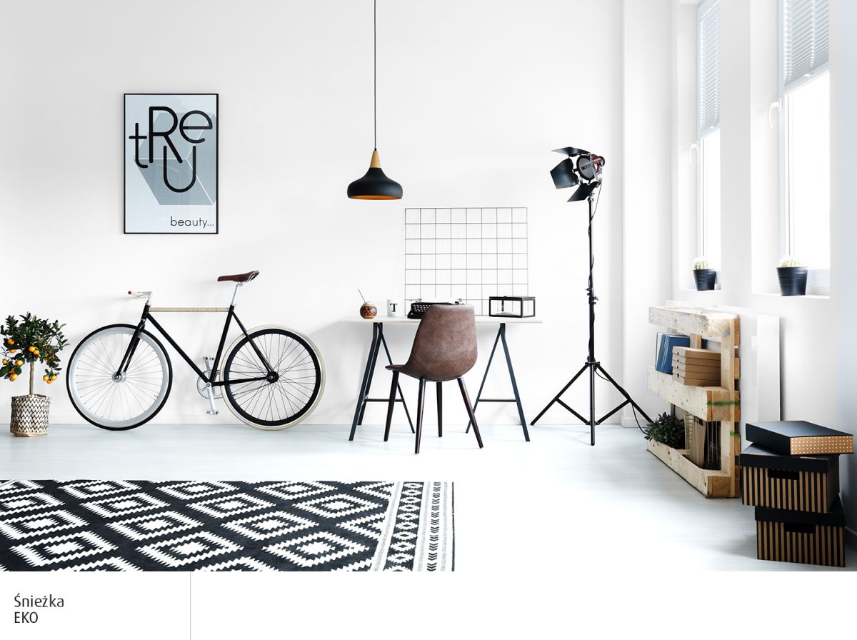 Так, очевидною перевагою білих інтер’єрів є те, що вони ясні. Білі поверхні відбивають світло, завдяки чому його стає більше у помешканні. Найбільші площини, тобто стіни та стелю, найкраще фарбувати фарбами Śnieżka Ґрунтувальна фарба і Śnieżka EKO. Перша бездоганно усуває відмінності в текстурі та кольорі основи. Друга дає матове сніжно-біле покриття, яке – що важливо для людей з підвищеною чутливістю – є гіпоалергенним. У місцях, куди потрапляє найменше сонця, краще розміщувати глянцеві, лаковані меблі. Це посилить ефект відбиття світла.