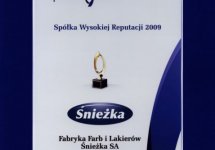 АО Лакокрасочный завод «Снежка» стал одной из пяти компаний, котирующихся на бирже, получивших почетное звание „Компании с высокой репутацией” PremiumBrand 2009
