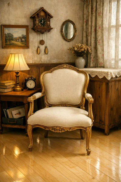Для пола лучше всего подойдет паркет или доски с искусственным эффектом старения. Для стен — ткани, узорчатые и флокированные обои, декоративные штукатурки и фактурные краски.