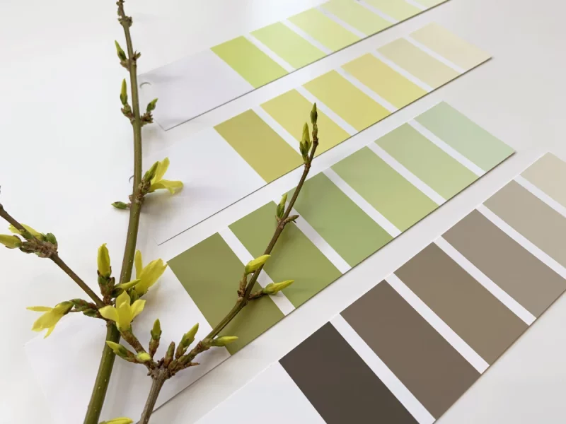 Всегда нужно покупать краску лично в магазинах строительных материалов. Образцы цветов следует выбирать на основе образцов краски, то есть окрашенных кусочков гипсокартона или другого материала. Не стоит рассматривать образцы на столе. В горизонтальном положении образец освещается лучше, чем на вертикальной стене, поэтому можно ошибочно выбрать слишком насыщенный оттенок.