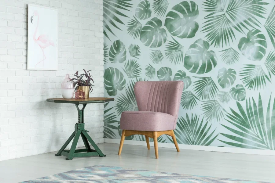 В гостиной акцентная стена с обоями чаще всего размещается за диваном или напротив него — за телевизором. Эту зону можно оформить геометрическим рисунком серо-голубого оттенка или тропическим принтом оливкового цвета. А для остальных стен подобрать спокойный бежевый или молочный тон. Это универсальное решение для тех, кто хочет создать светлый, уютный, но не скучный интерьер. Если вы стремитесь к более сдержанной, камерной атмосфере, оформите акцентную стену обоями с фактурой бетона или камня, а стены — приглушённым графитовым или туманно-синим цветом.![]()