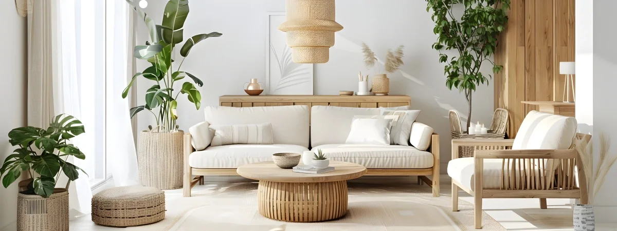 - Современный дизайн интерьеров все чаще делает акцент на натуральных материалах и биофилии, включая в пространство дерево, камень, плетеную мебель и растения. Такой подход способствует здоровью, расслаблению и сближению с природой , а также способствует экологической ответственности.